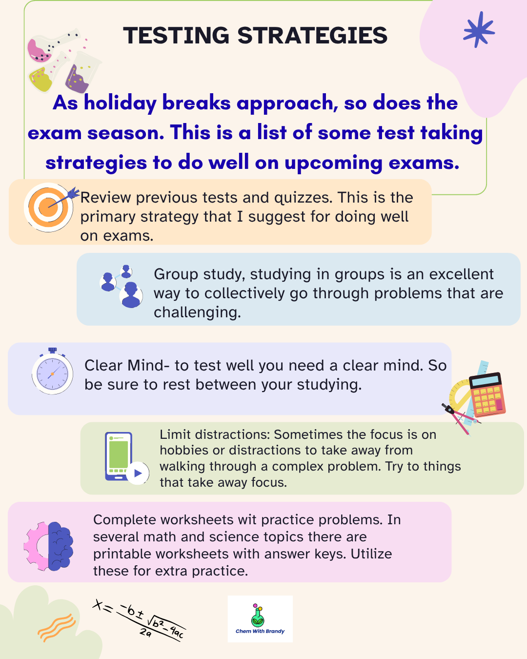 Exams are quickly approaching if not already here. This is another set of strategies for doing well on upcoming exams. Let me know what strategies work best for you in the comments.